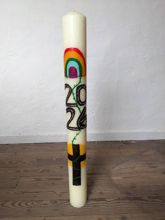 Auch die Konfi-Teamer wurden kreativ und gestalteten die diesjährige Osterkerze für Muggensturm. Vielen Dank an die Konfi-Teamer Elias, Leni, Lukas und Rebecca für die schöne Osterkerze und eure Unterstützung beim Konfi-Samstag!