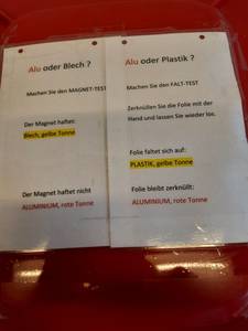 Informationen zur Alusammlung sind an der Tonne angebracht